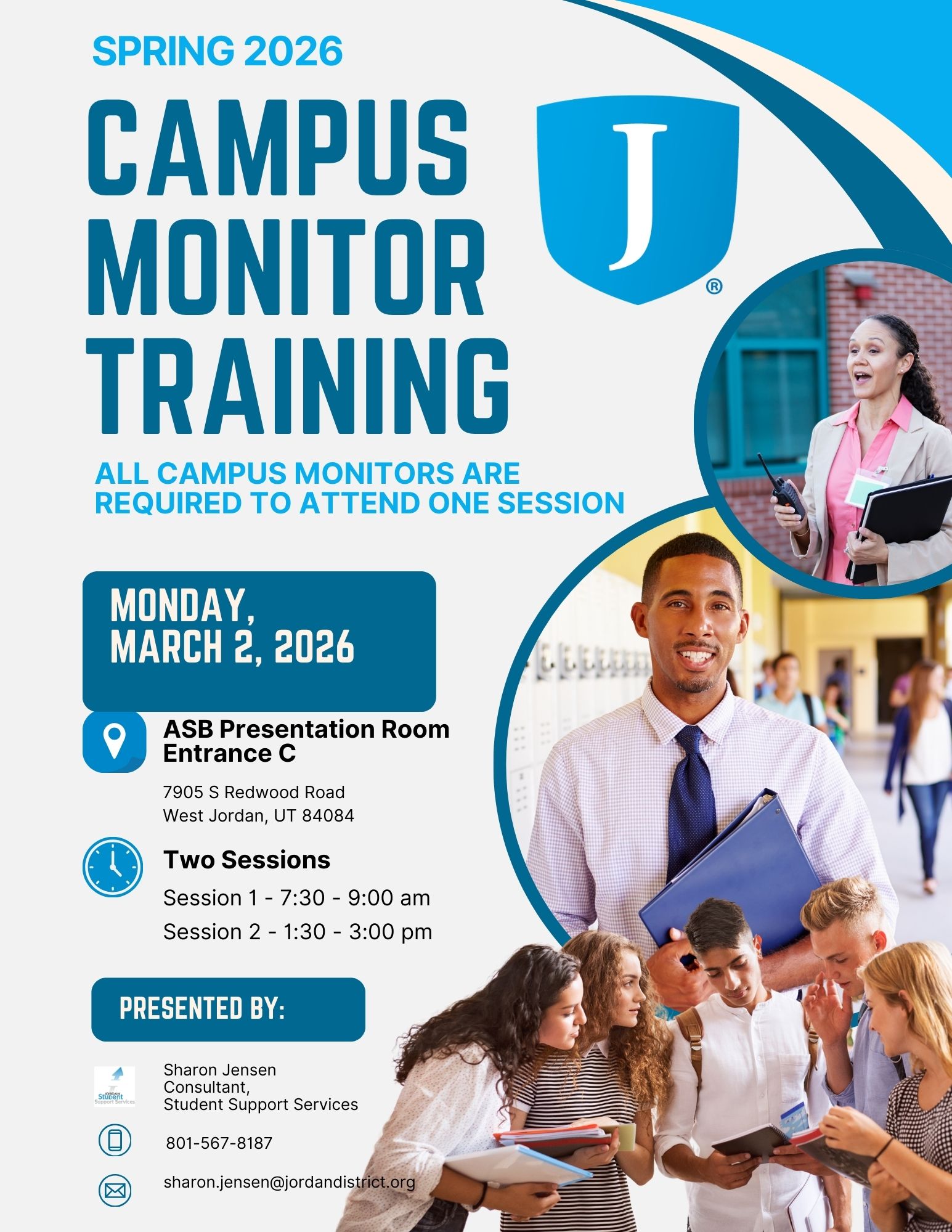 Spring 2026 Campus Monitor Training will be held in two sessions on Monday, March 2, 2026. The morning session will be held in the ASB presentation room from 7:30 -9:00 am. The afternoon session will be held in the ASB presentation room from 1:30 -3:00 pm.